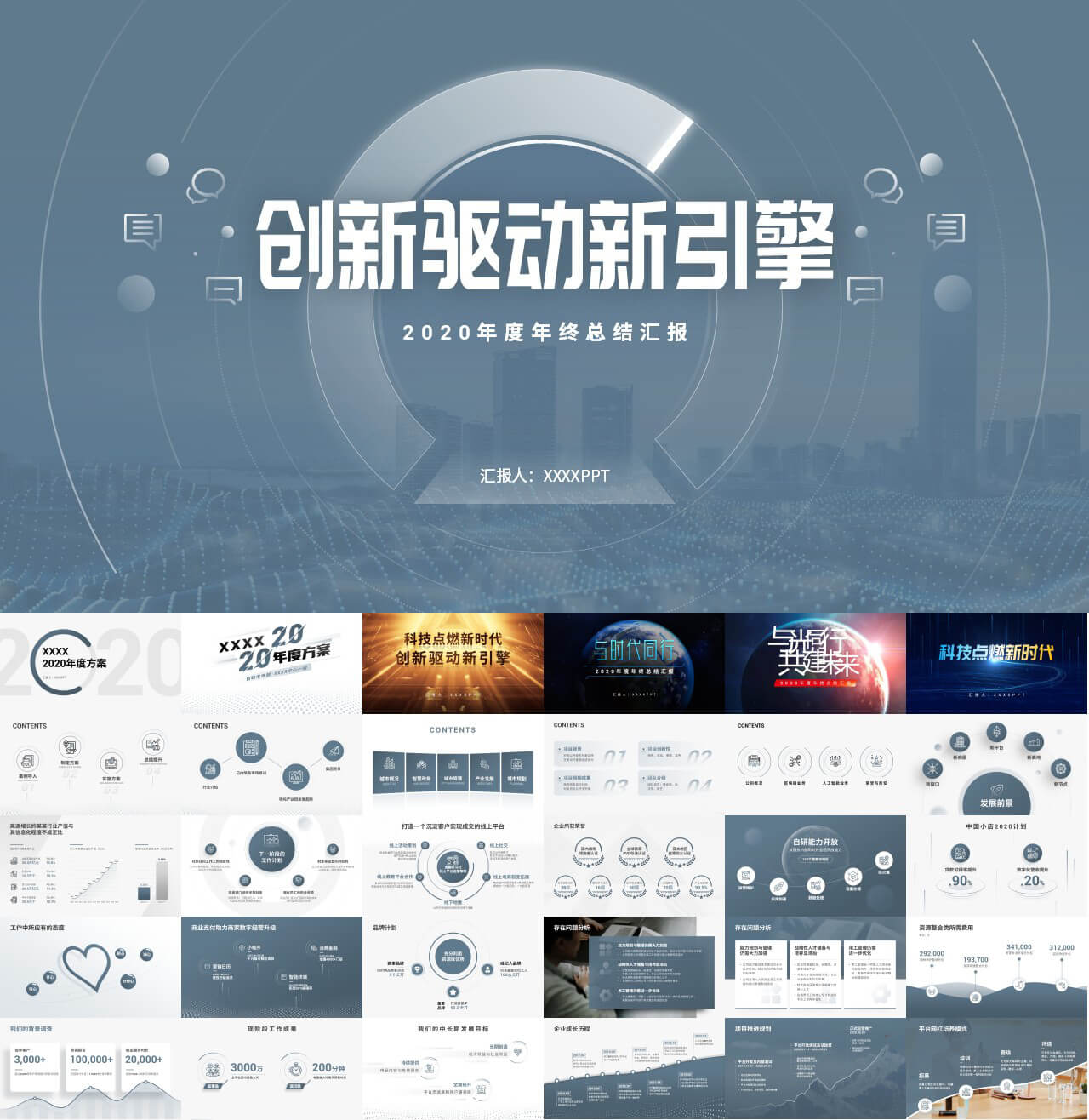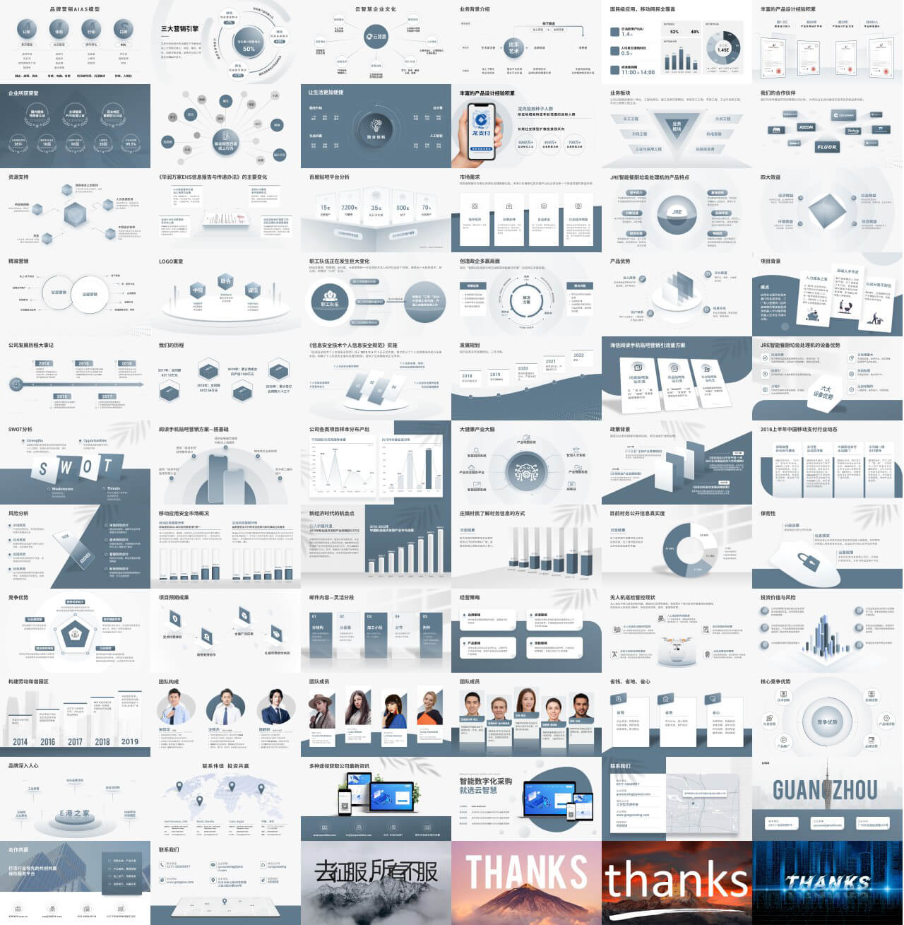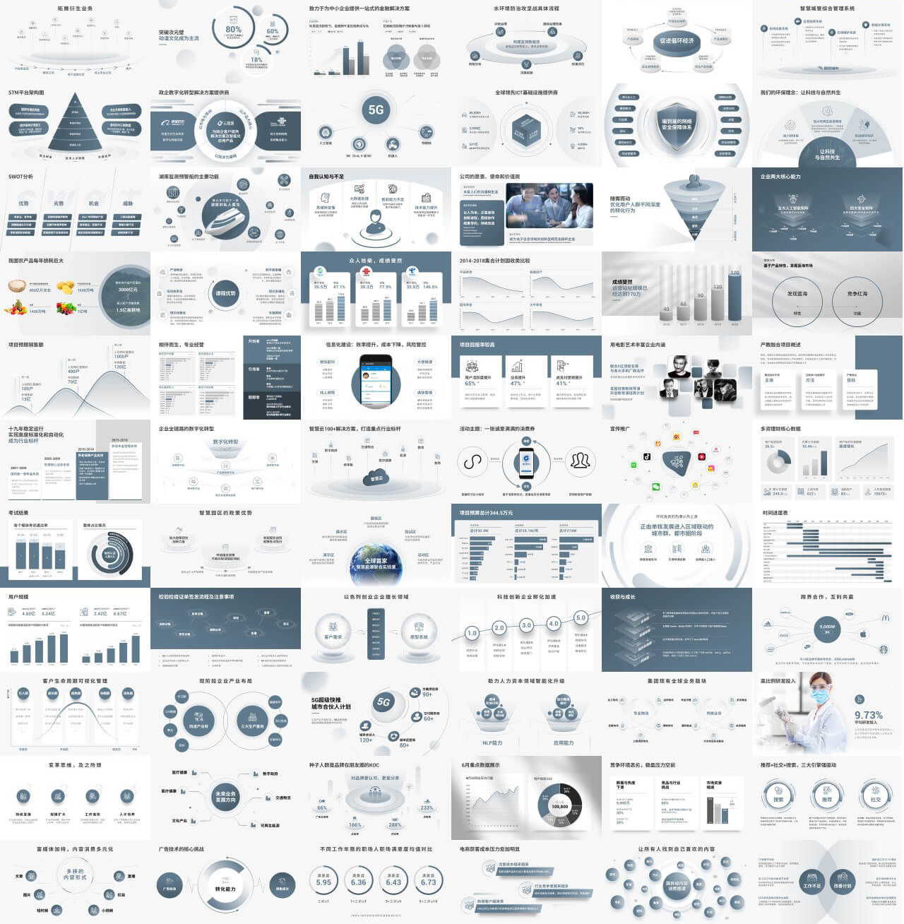 163页淡蓝灰工作总结汇报PPT灵感手册