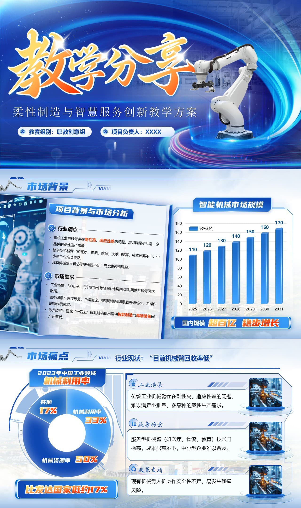 10页蓝色风创赛智能教学实施报告ppt模板
