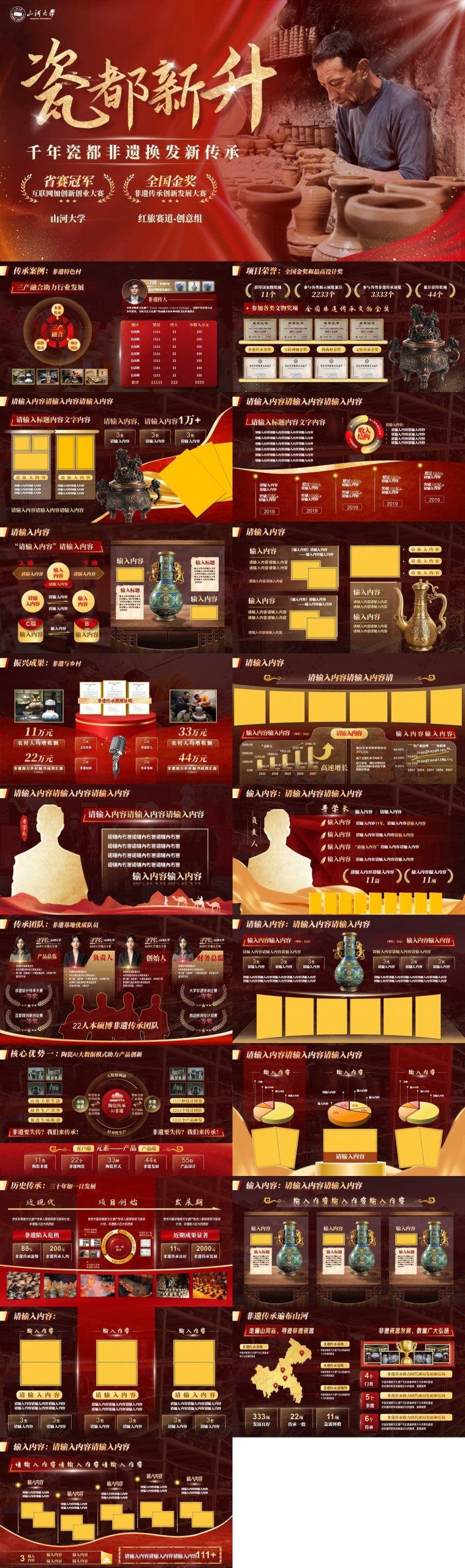 20页红色非遗文化国赛PPT模板PPT教学课件