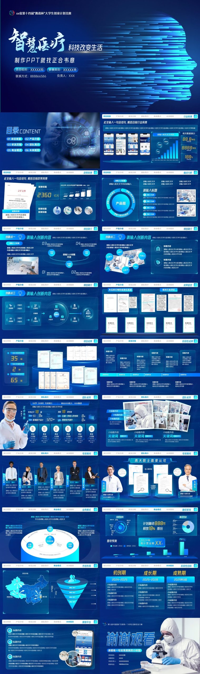21页蓝色风智慧医疗ppt模板创赛ppt