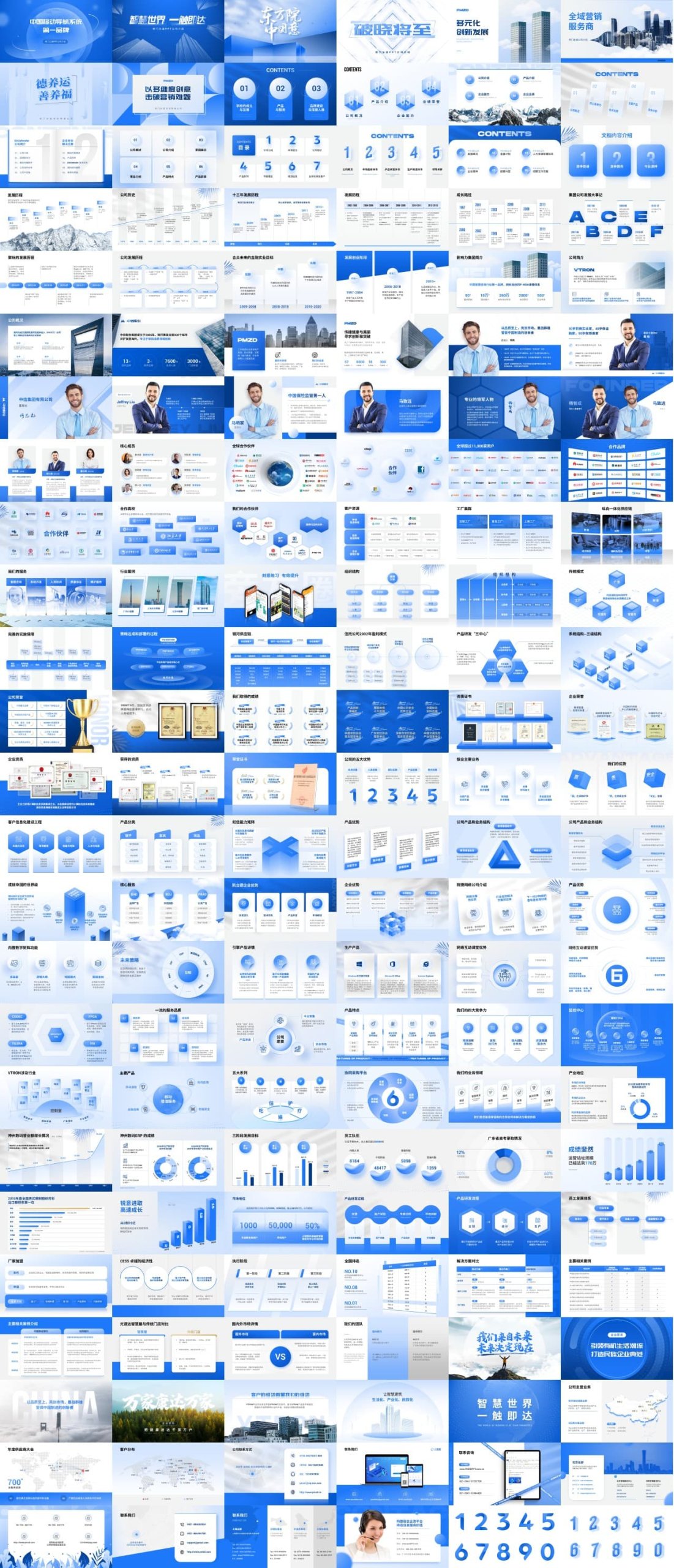 150页经典蓝企业介绍工作总结汇报PPT灵感手册
